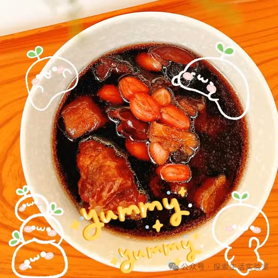 3️⃣把泡好的黑豆、焯好水的排骨、洗乾淨的桑葚還有薑片一起放進鍋里,加適量的水,大火燒開後轉小火,慢慢燉煮1.5 - 2小時,直到黑豆和排骨都變得軟爛,就可以啦~
