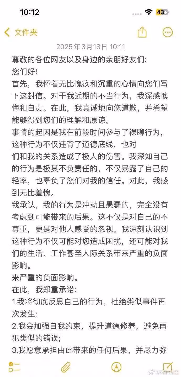 王木木事後向所有粉絲道歉。(圖/翻攝自趙俞鋒微博)