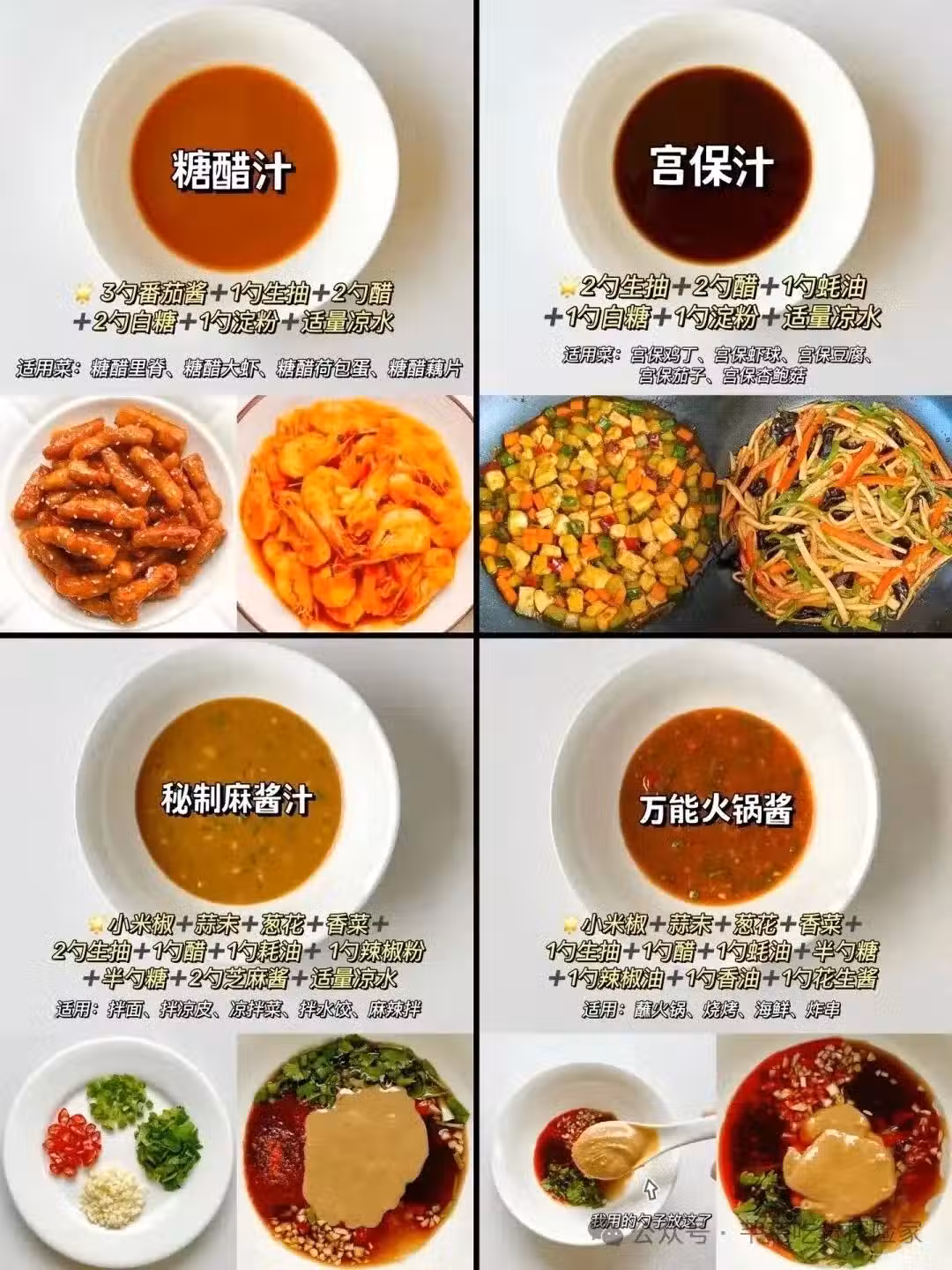 ✅泰式酸辣汁 準備需要用到的調料:小米辣,蒜末,洋蔥,檸檬,生抽,醋,白糖,涼水。 ✅清淡蘸料汁 準備需要用到的調料:蒜末,蔥花,洋蔥,香菜,白芝麻,生抽,醋,蚝油,清水。 ✅酸奶蛋黃醬 準備需要用到的調料:酸奶,蛋黃,檸檬汁,海鹽,黑胡椒粉。 ✅牛油果醬 準備需要用到的調料:牛油果,雞蛋,沙拉醬,海鹽,黑胡椒粉。