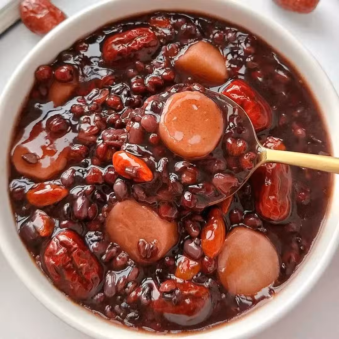 【食材】紅豆100g、紅棗5顆、黑米50g、薏米30g、枸杞15g、山藥100g