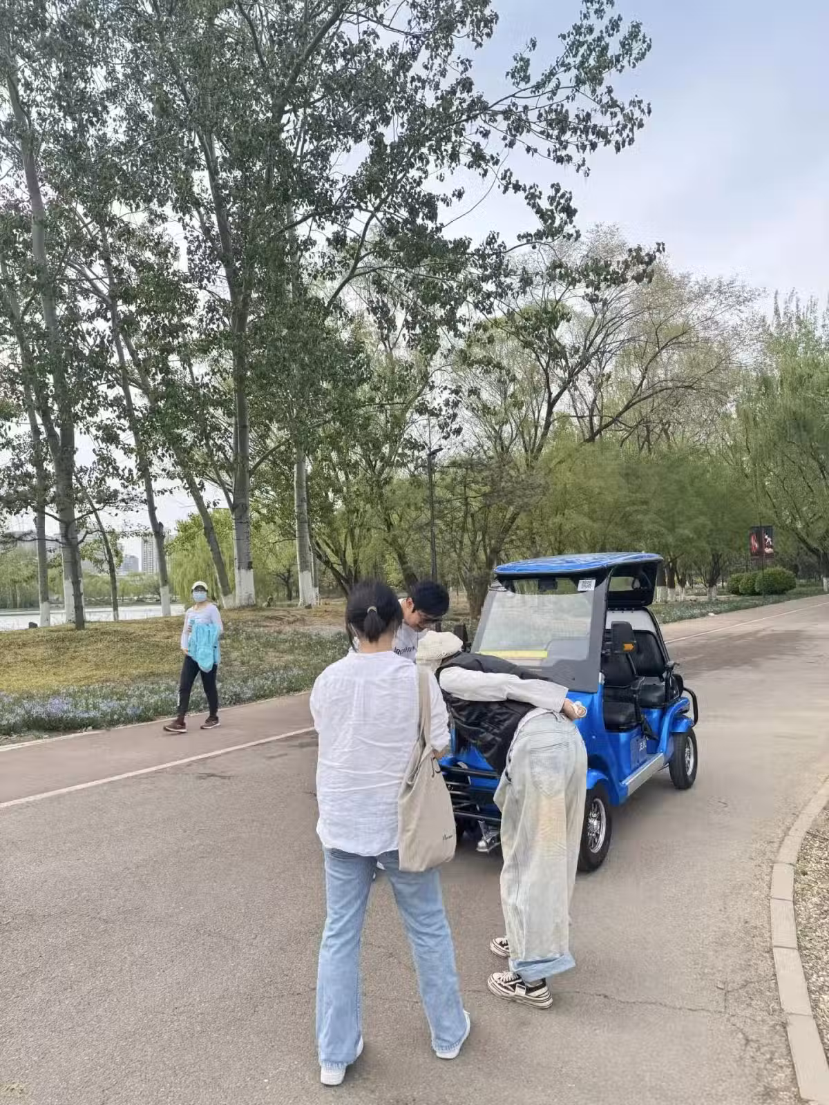 4月16日,他一個人到朝陽公園散步,開著小車在公園裡遊覽觀光,沒有戴口罩,被民眾認出來了!