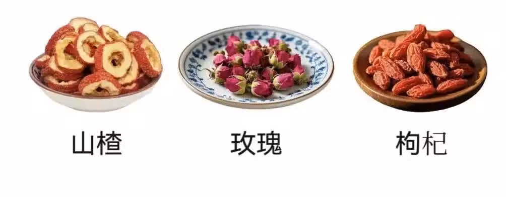 【食材】山楂10g、玫瑰5朵、枸杞10g