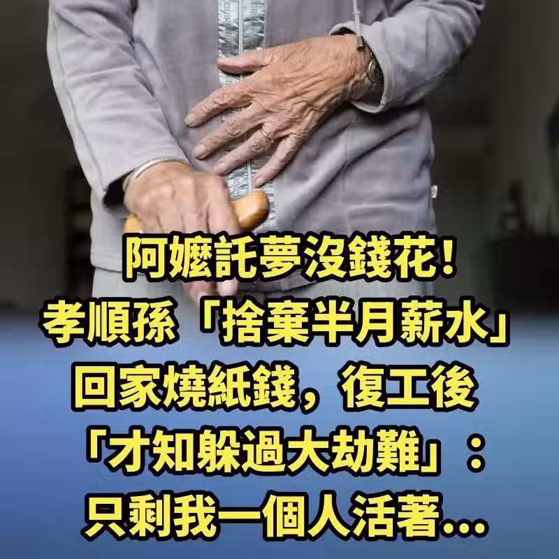 阿嬤託夢說沒錢花!孝順孫「捨棄半月薪水」回家燒紙錢,復工後「才知躲過大劫難」:只剩我一個人活著...