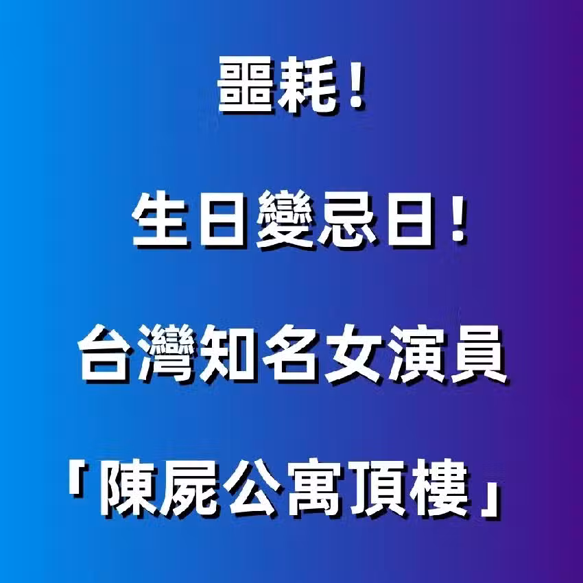 噩耗!生日變忌日!台灣知名女演員「陳屍公寓頂樓」