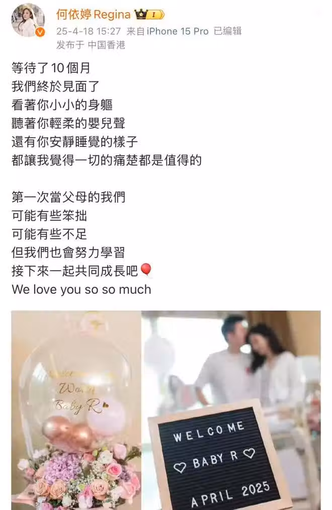 4月18日,娛樂圈再傳喜訊,香港TVB知名女演員何依婷通過社交平台官宣喜訊,她順利產下一女,母女平安,31歲首次當媽讓她激動且幸福,網友得知消息後也紛紛送上滿滿的祝福。