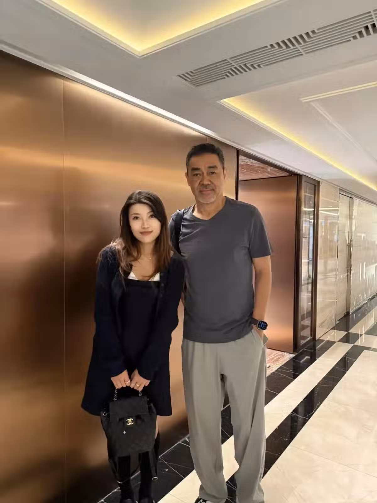 61歲劉青雲在香港,和郭藹明喝下午茶,雙鬢花白,臉上充滿蒼老感