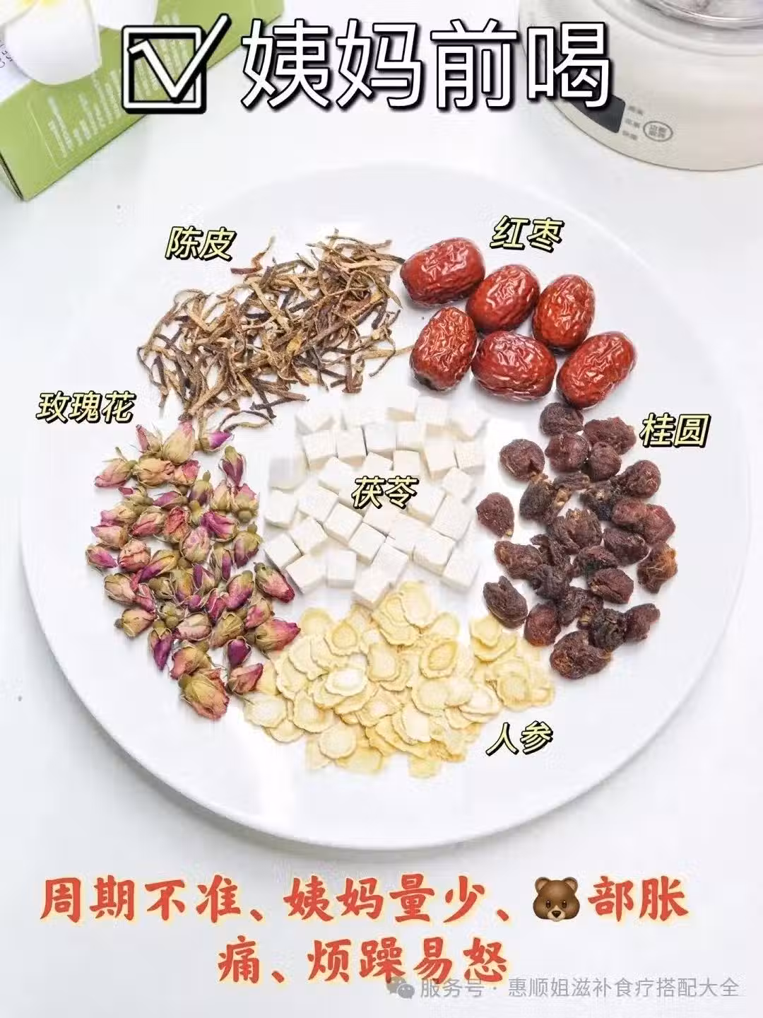 女孩子總有那麼幾天會不舒服,來姨媽前腰酸背痛,來姨媽時肚子痛,量少成塊,周期不准。心情起伏也很大,總會莫名地暴躁或沮喪,這時真是看誰都不順眼…·