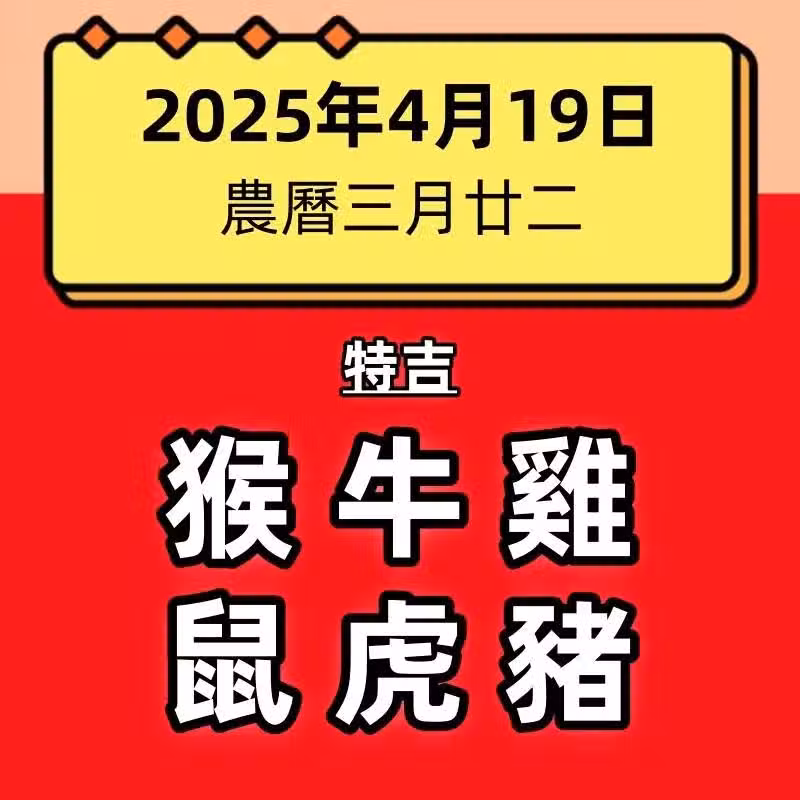 小運播報:2025年4月19日(星期六)~猴、牛、雞 大吉