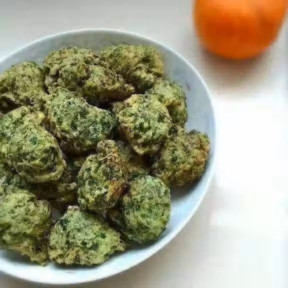 麵粉的量,只要可以讓芹菜葉表面有一層麵粉,發白就可以了。
