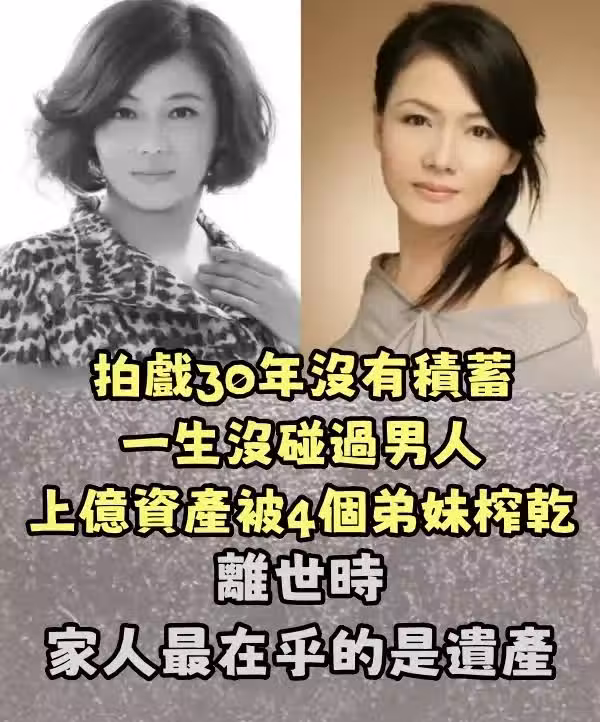拍戲30年沒有積蓄,一生沒碰過男人,上億資產被4個弟妹榨乾,離世時家人最在乎的是遺產....