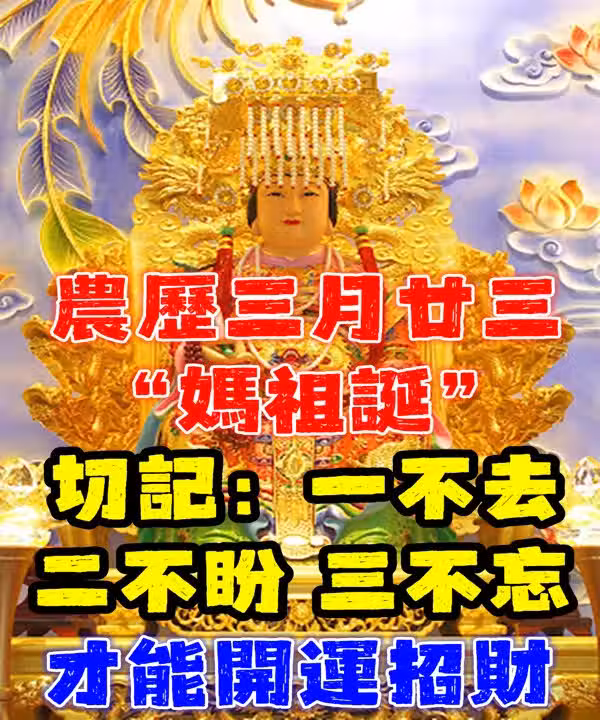 農曆三月廿三「媽祖誕」,切記:一不去、二不盼、三不忘、才能開運招財