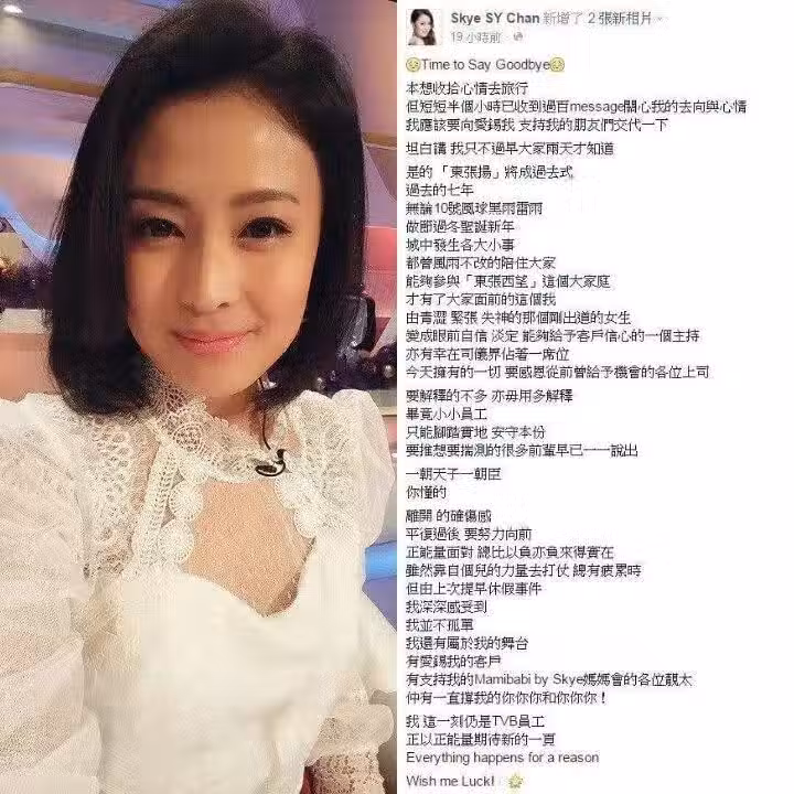 然而,職場風雲變幻,哪有永遠的安穩?2015年12月,TVB高層人事變動,一場大換血波及了《東張西望》主持團隊。陳倩揚,這位做了6年的功勳主持,突然就被「飛」了。