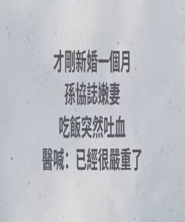 快訊 / 才剛新婚一個月...孫協志嫩妻「吐鮮血緊急送醫」