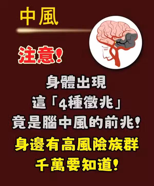 中風的徵兆有哪些,哪些人容易出現中風,出現中風該怎麼辦,一定要早知道早記牢!