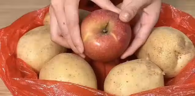只需要將土豆和蘋果放在一起,用塑料袋裝好,排掉空氣後封口,再放到陰涼通風的地方。 方法二:黑袋避光法