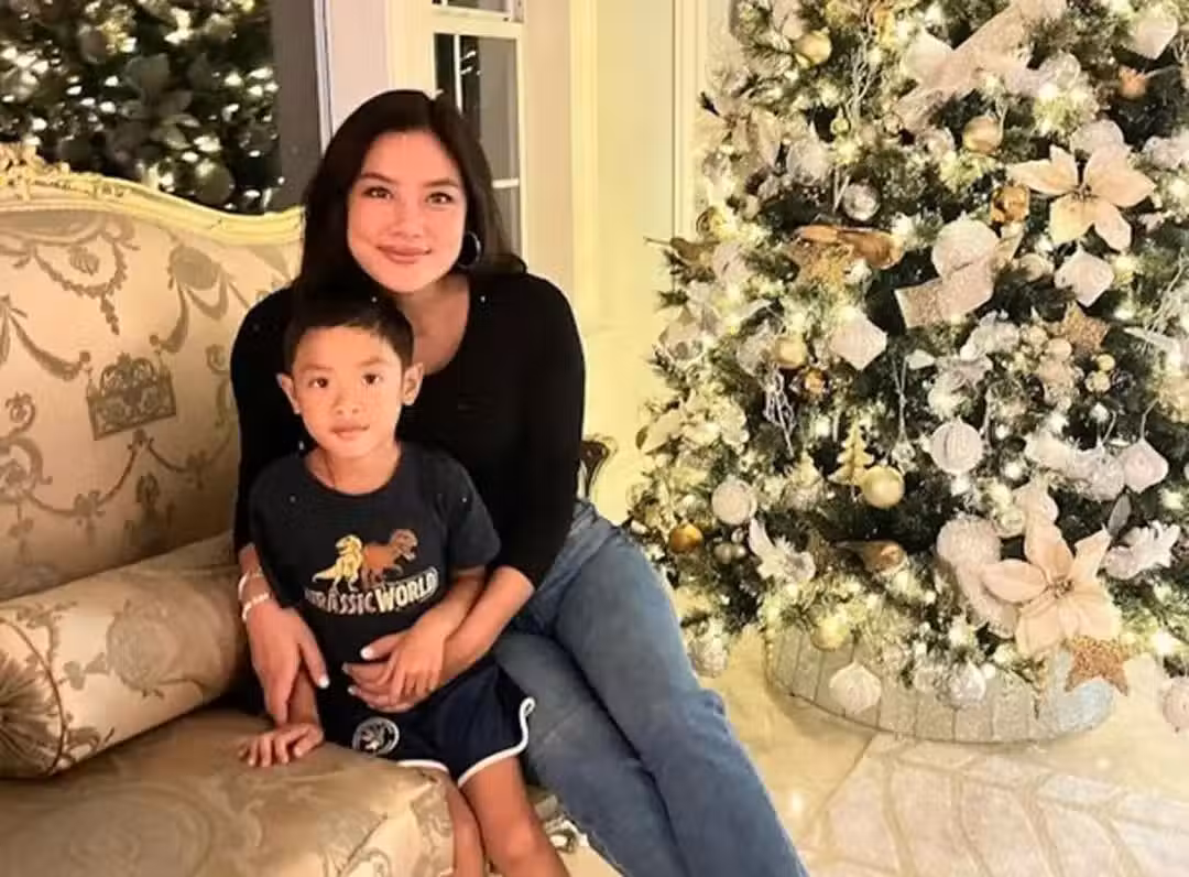 樂基兒在塞班島為兒子慶生,穿T恤熱褲身材健美,6歲兒子手腳修長