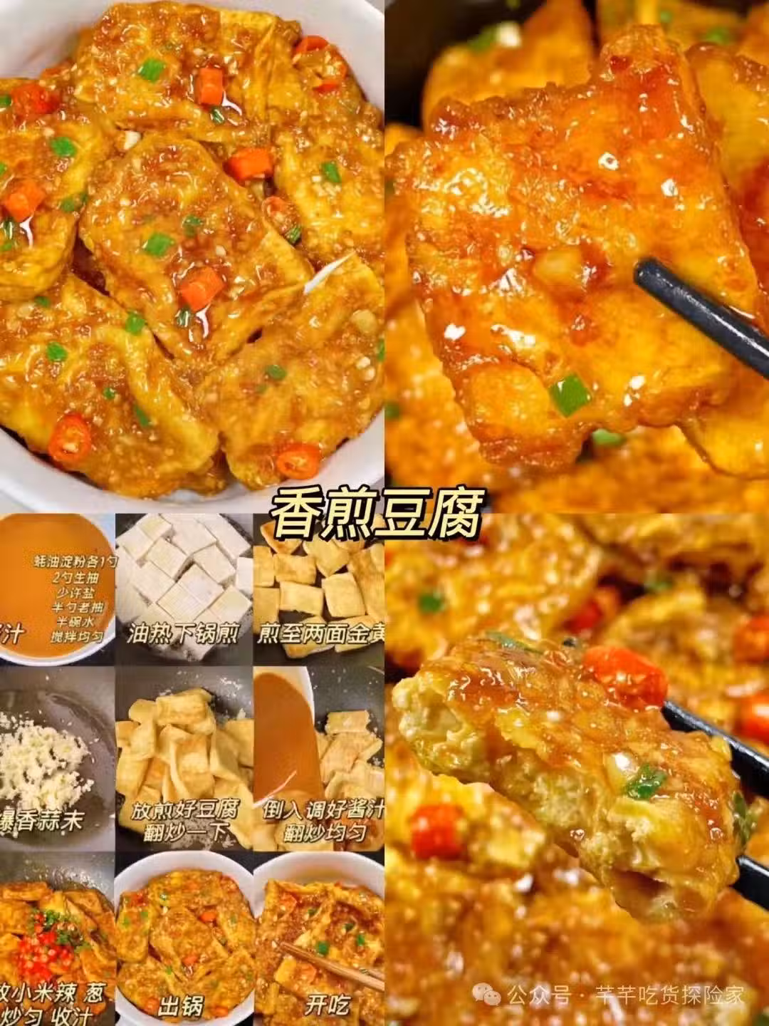 三、香煎豆腐,酥脆的豆腐包裹上濃郁的醬汁,香濃下飯。