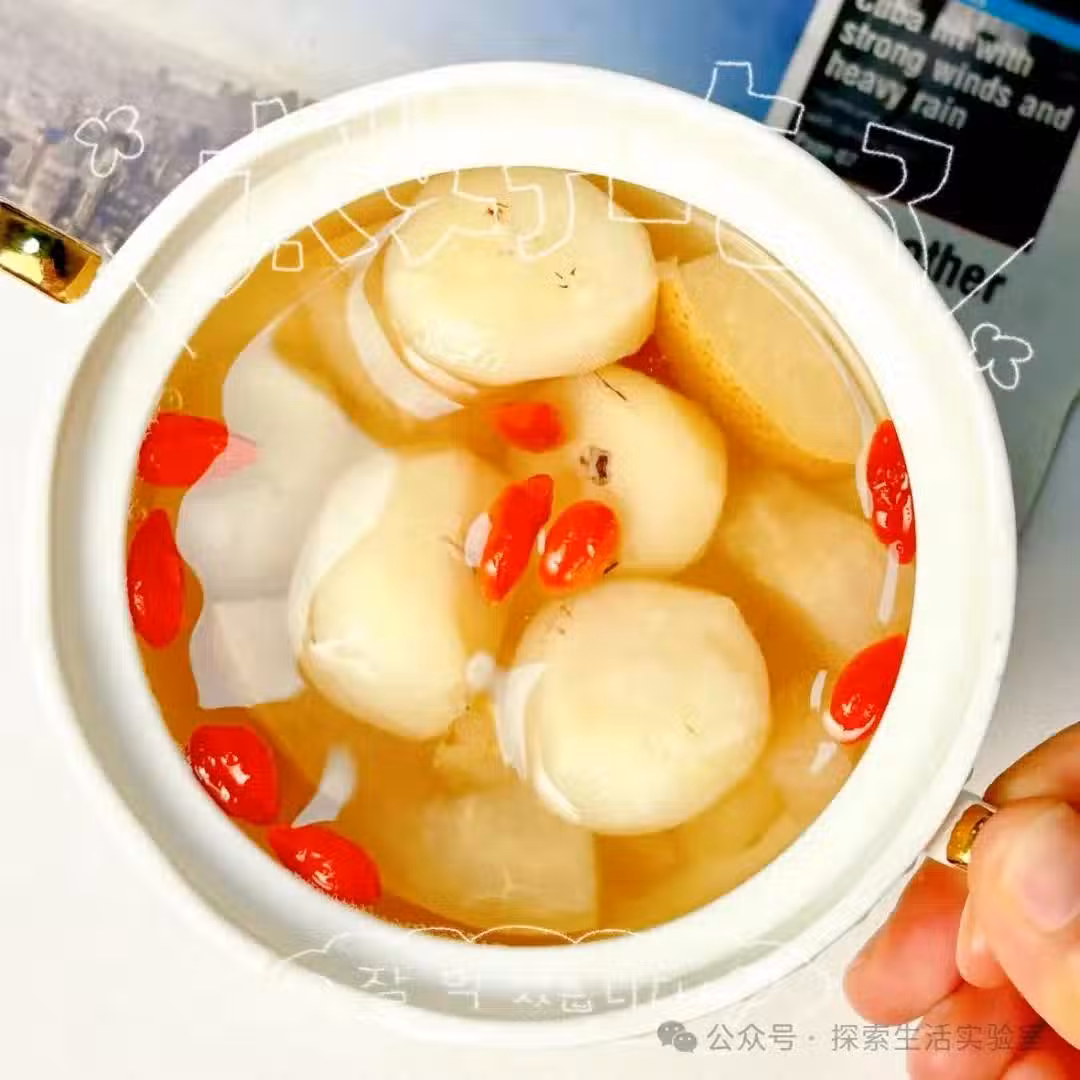這湯簡直是喉嚨乾燥救心丸!前陣子我感冒後一直乾咳,喝了兩天這個,感覺喉嚨不癢了!雪梨煮完吃起來超級潤喉,喝完嗓子潤潤的超舒服~馬蹄能把肺里的燥垃圾清乾淨。上周我媽煮了一鍋給鄰居阿姨,她說喝完痰都不黏糊糊了,直接從「老煙嗓」變成「清亮嗓」!