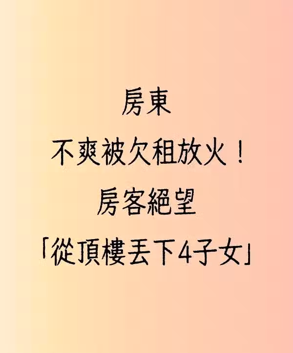 快訊/房東不爽被欠租放火!房客絕望「從頂樓丟下4子女」……