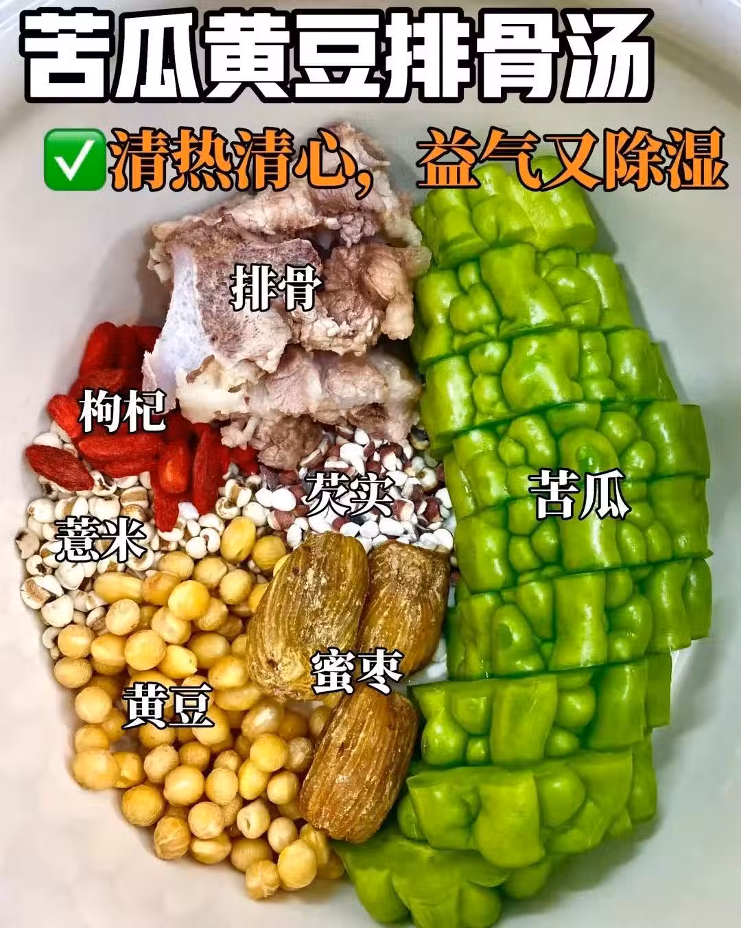 暑濕剋星、苦瓜芡實薏米黃豆湯、一碗橫掃濕毒、火氣、水腫! 為什么喝它? 苦瓜:清熱降火,解暑毒,改善痘痘、口乾舌燥 芡實:健脾祛濕,緩解虛胖、水腫、便溏 薏米:利水滲濕,美白肌膚,改善濕疹、腳氣 黃豆:補充植物蛋白,平衡寒性,增強體質