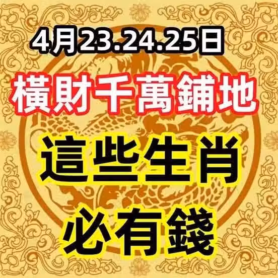 4月23.24.25日橫財千萬鋪地,這些生肖必有錢.