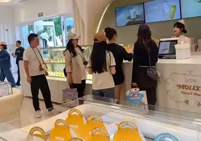 從網上的照片可以看出,汪小菲一家應該是在逛公園的過程中來到了甜品店購買甜品。