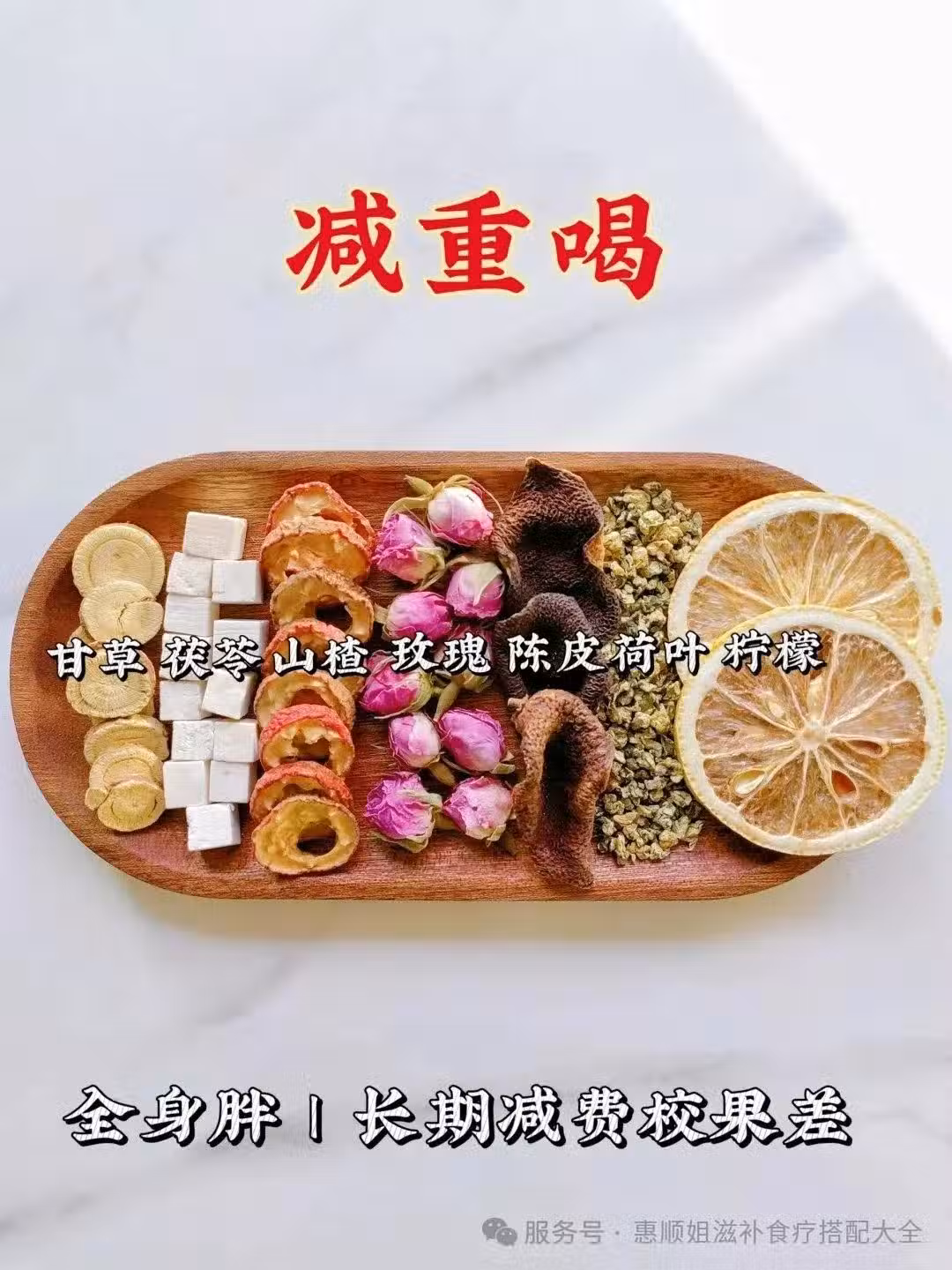 🌿配料:陳皮3克、山楂10克、荷葉5克、茯苓10克、玫瑰花2朵、甘草3克、檸檬2片