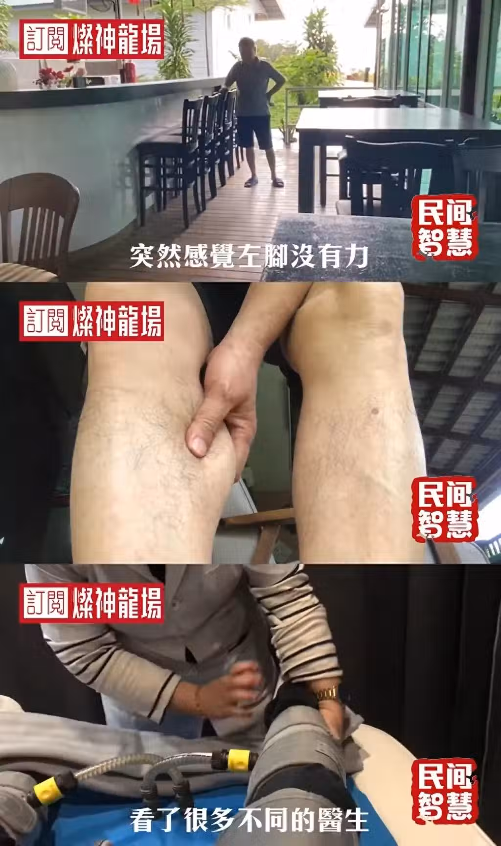 67歲的廖偉雄兩個月前透露突然感到左腳無力及失去控制能力,事後發現左腳中風,幸好及時服藥:「一啪下去,氣血都通啦,整隻腳都能走了。」但事後發現左腳肌肉有流失的情況,廖偉雄當時表示接受針灸治療「好了六成」,另透露右腳亦有痛風問題。