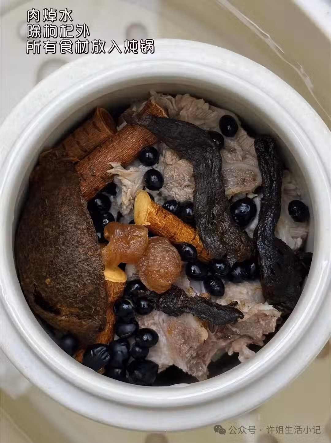 瘦肉焯水,所有材料清洗乾淨後放入燉盅,加適量清水燉煮2小時,大家根據自己的燉盅調節時間,出鍋前加入枸杞悶一下即可。