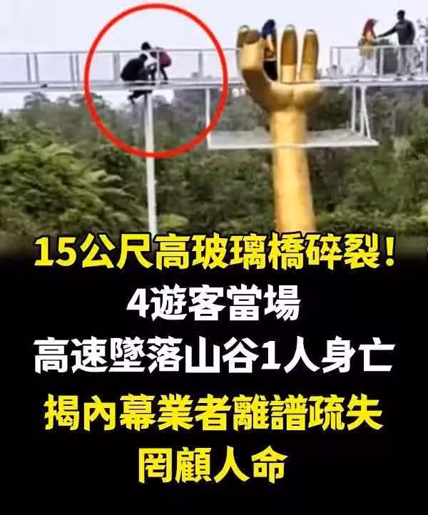 超驚悚!15米高玻璃橋碎裂!4遊客「當場高速墜落山谷」1人身亡 揭內幕「業者離譜疏失」罔顧人命