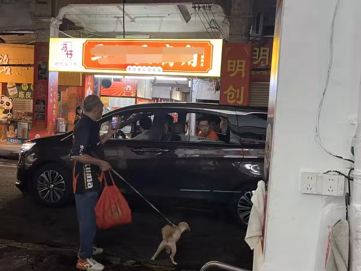 41歲周柏豪現身廣東,坐豪車去吃腸粉,打扮時尚,親自到店裡排隊