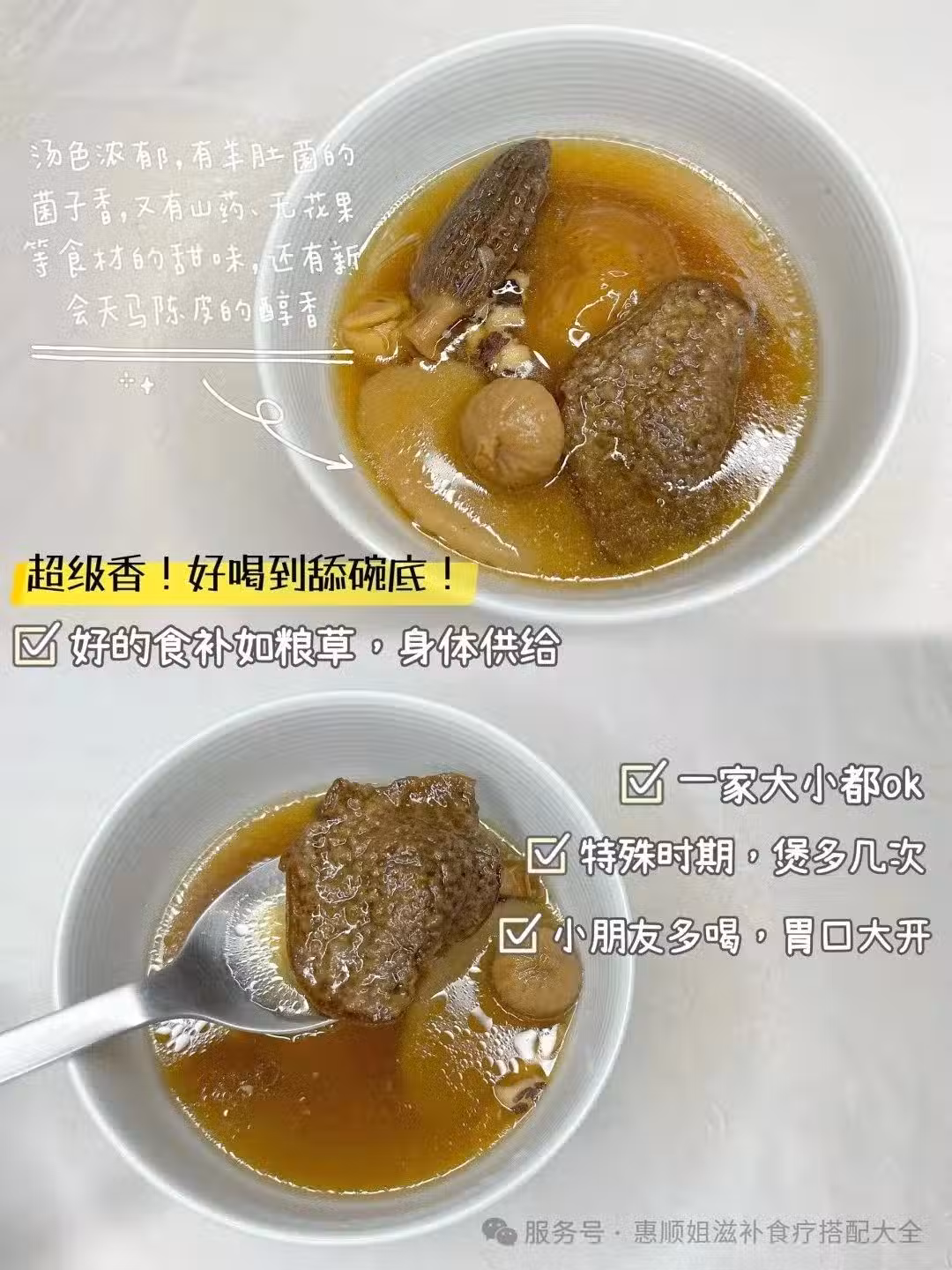 2️⃣所有食材放進燉盅里,記得把泡發羊肚菌的水也倒進燉盅里,加適量的水,隔水燉2個半小時,加鹽就可以喝啦