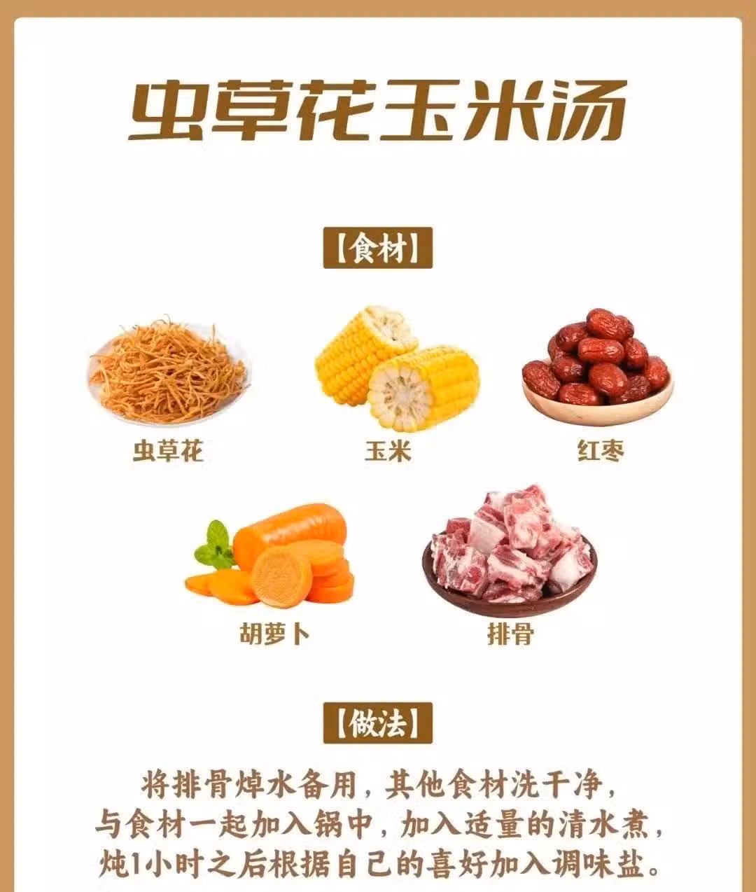 食材:蟲草花、玉米、紅棗、玉米、排骨