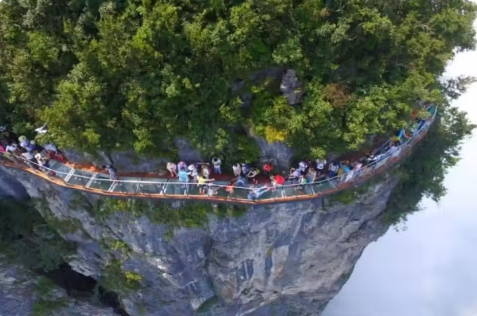 看慣了高樓大廈的都市風景,大家轉往親近大自然,除了風景區推出玻璃橋面供大家行走外,也有不少餐廳創意巧思,將地板改成玻璃制,