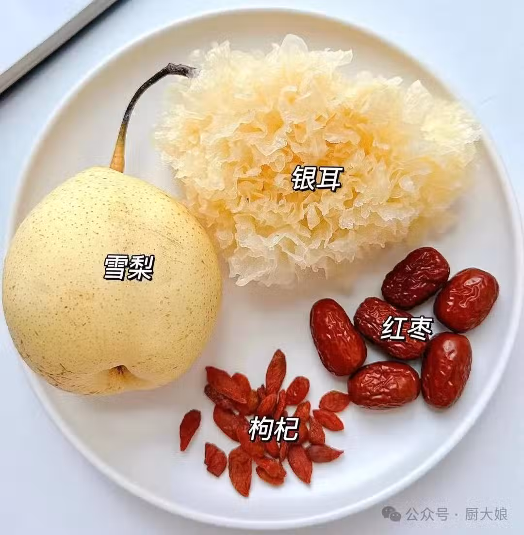 ✅做法: 1⃣️泡好的銀耳剪碎(越碎越容易出膠),兌入清水煮20分鐘 2⃣️再把梨,紅棗,冰糖放進去時煮10~15分鐘 3⃣️最後把枸杞放進去攪勻即可