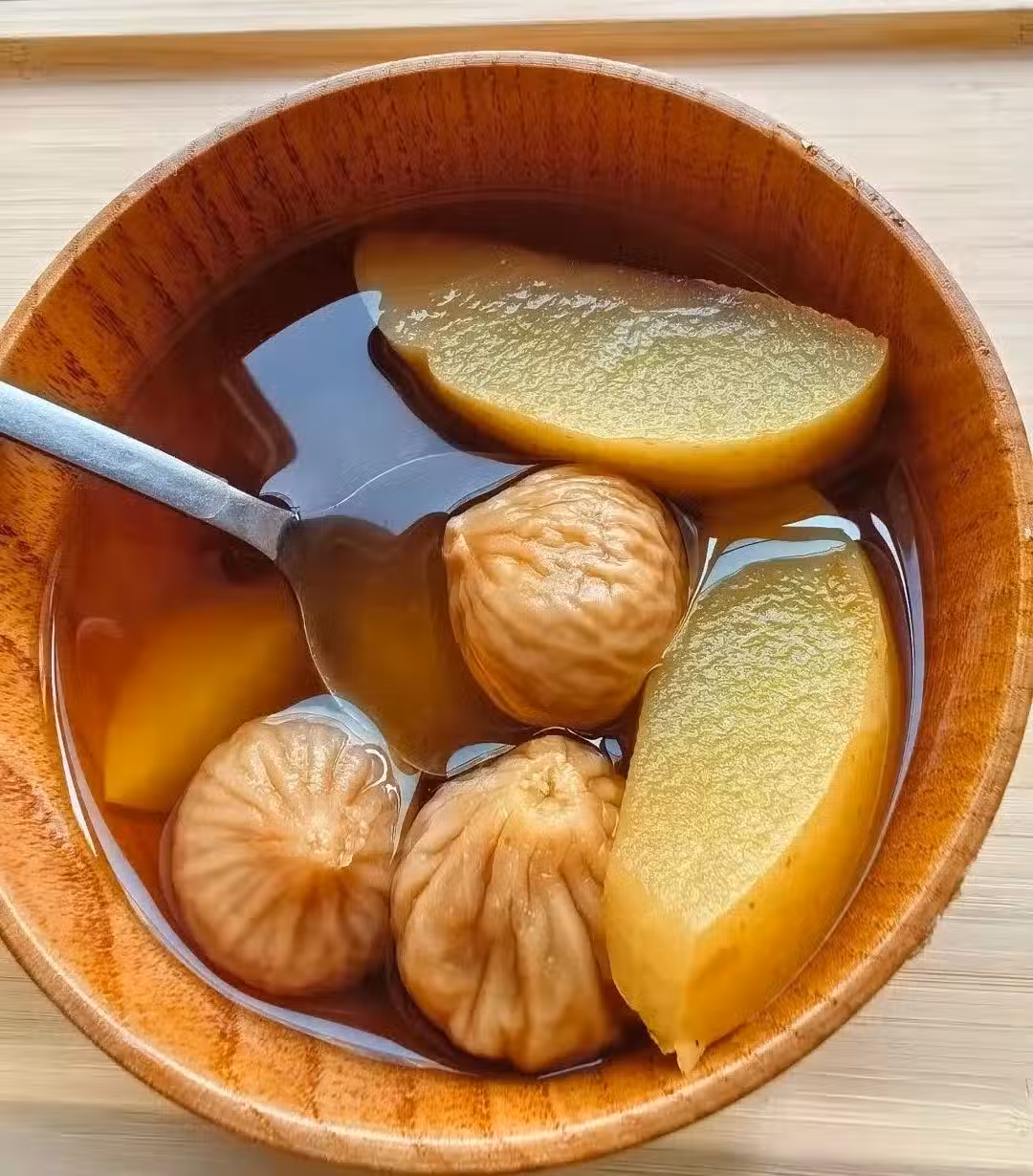 女生愛生悶氣,憋住,就會堵住。愛自己的方式當然是讓自己放下,不計較。但如果無可避免「生氣」,我們來說說生氣之後怎麼彌補。這個【無花果蘋果湯】值得一試。為什麼有用呢?中翳認為,無花果味甘性涼,歸肺、胃、大腸經,能清熱生津、潤 肺通 chang 、健pi開胃、解 du 消月中,一般人均可食用。 無花果紅棗蘋果湯是一道以無花果、紅棗和蘋果為主要食材的滋補湯品,結合了水果的清甜與藥材的溫潤,適合日常養生或調理身體。