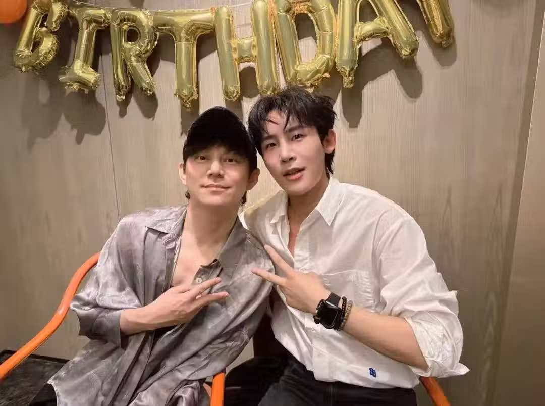 而該演員還曬出與何老師的合照,何炅的深V低領襯衫相當搶鏡,著實沒想到私下的何炅居然穿得這麼年輕。---