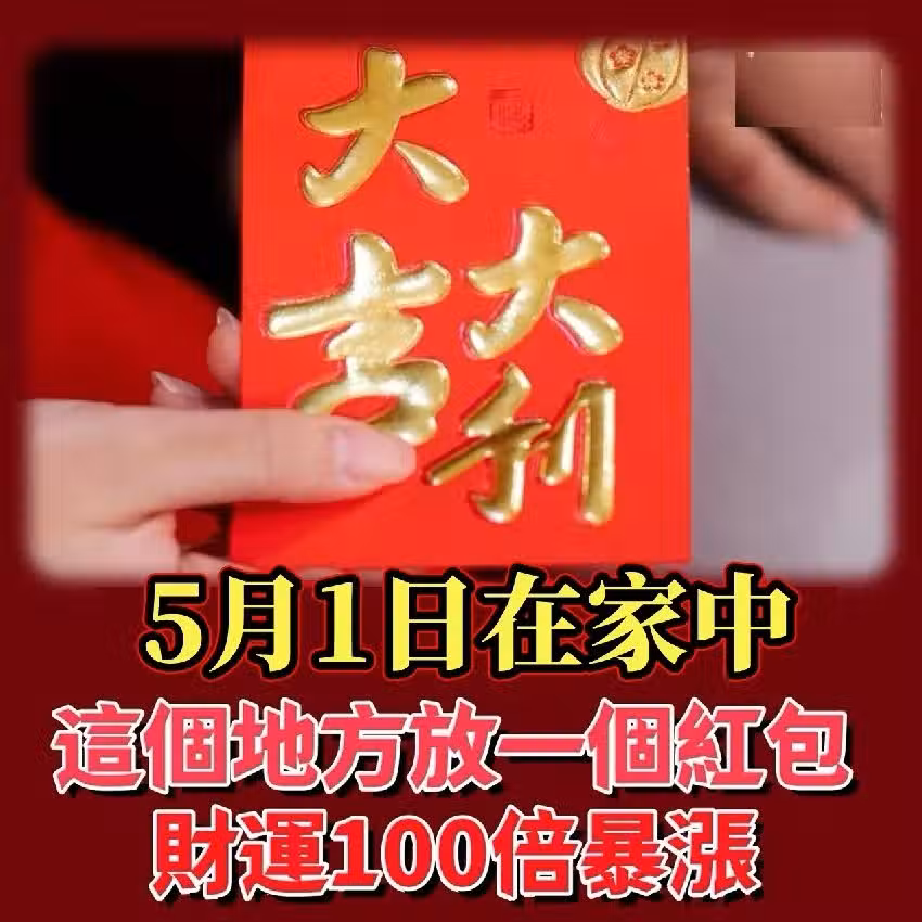 **5月1日「在家中這個地方」放一個紅包,竟能讓財運暴漲100倍!**💰📈
