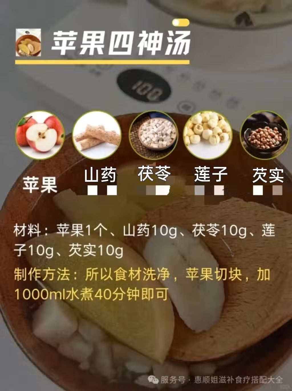 四神湯是千古健脾養胃祛濕名方,胃不好和常吃外賣的家人們,都去試試這個養脾胃的方子!四神湯➕蘋果都是溫和滋養的好食材,每周喝個三四次,巨巨巨養胃。