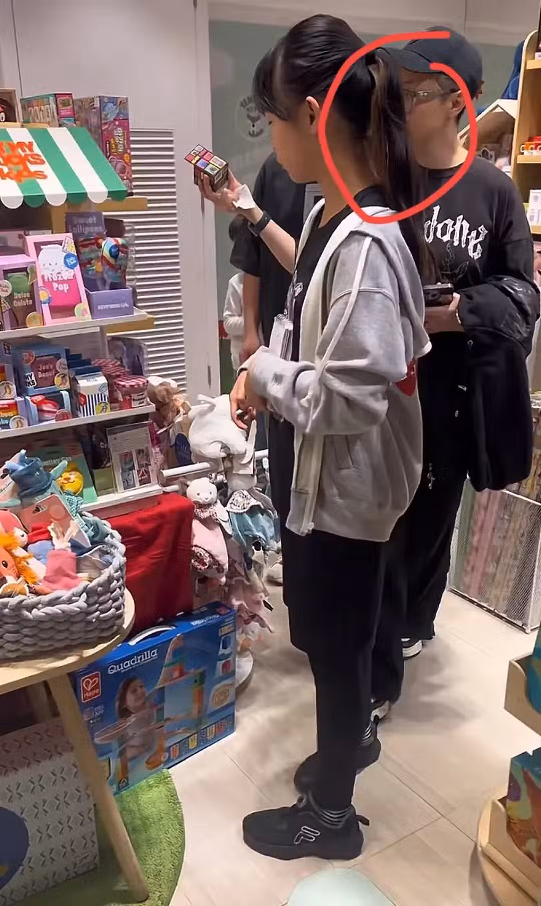 網友分享的視頻里,大女兒也出鏡了,她穿了件灰色外套。她長高了不少,五官沒什麼大變化,還是特別像錢嘉樂。仔細看,小小年紀的她就開始染髮了,應該是個愛漂亮的女孩。