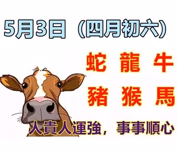 小運播報:2025年5月3日,星期六,農曆四月初六,法定工作日。