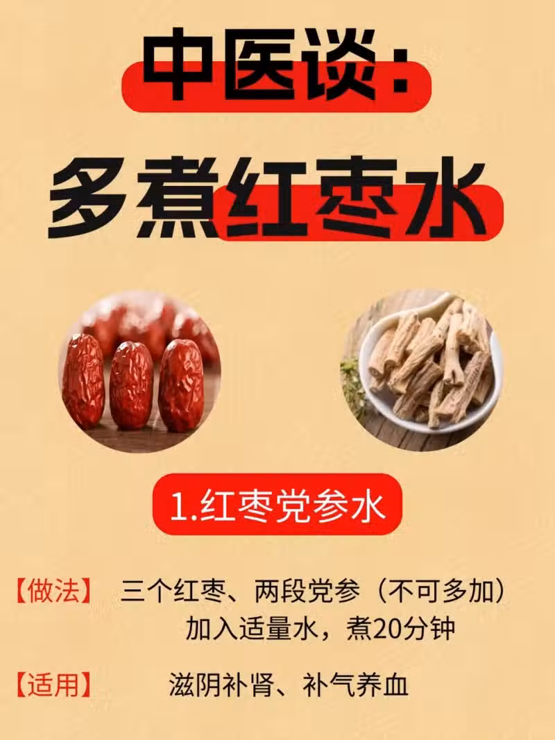 黨參補氣健脾,和紅棗一起煮,適合脾胃虛弱、氣短乏力人群。日常飲用,增強體質,提升免疫力。