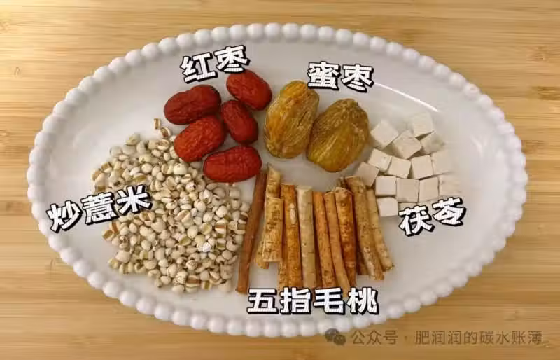 ✔️食材:五指毛桃 茯苓 紅棗 蜜棗 炒薏米