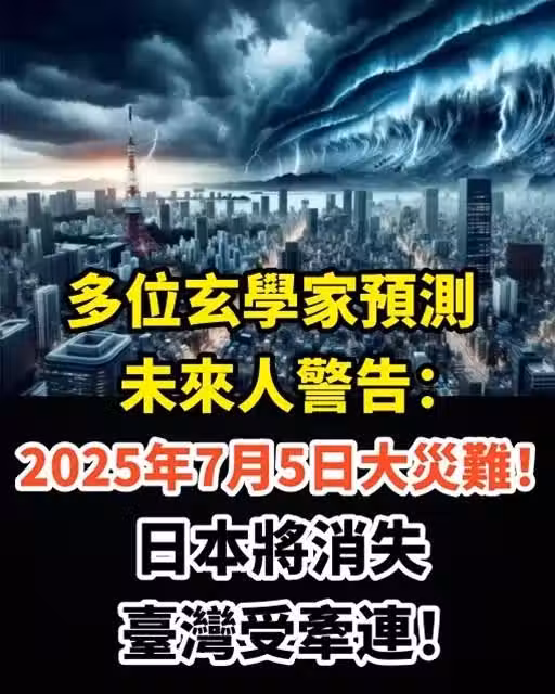 多位玄學家預測、未來人警告:2025年7月5日大災難!日本將消失,台灣受牽連!