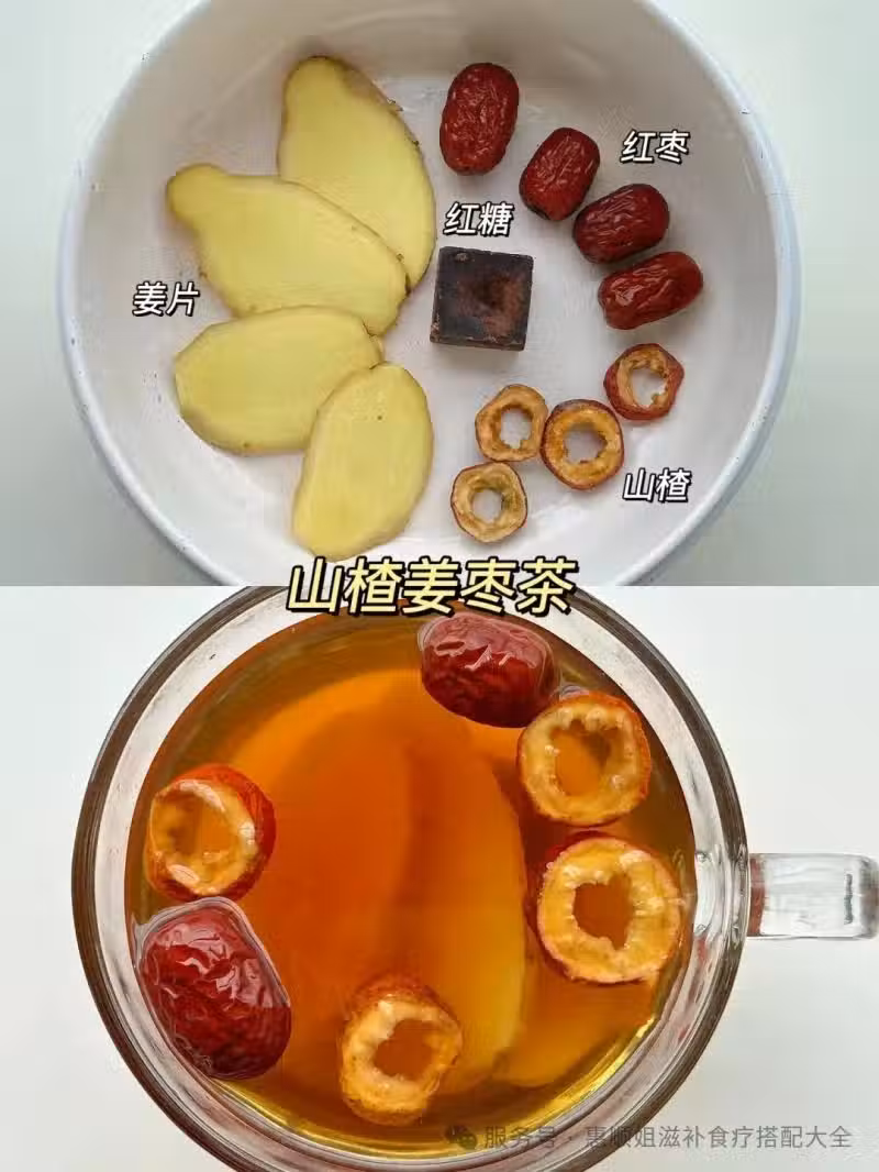 山楂5克➕紅棗3顆➕薑片🫚3片➕紅糖適量