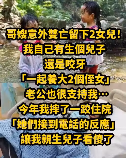 哥嫂意外雙亡留下2女兒! 我自己有生個兒子,還是咬牙「一起養大2個侄女...」老公也很支持我…今年我摔了一跤住院「她們接到電話的反應」讓我親生兒子看傻