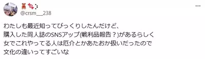 日本X網友「@crsm___238」最近發了這篇文章,探討宅男與宅女們對於「曬戰利品」這種行為有著截然不同的看法,隨即引發熱烈議論!