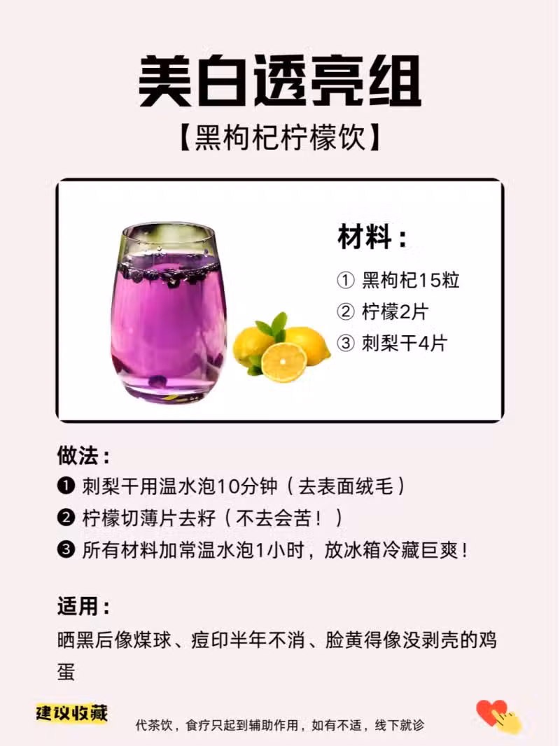 4️⃣ 黑枸杞檸檬飲——美白天花板