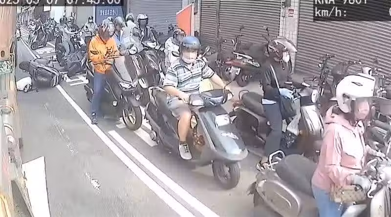 貨櫃車行車記錄器拍下全程,一旁慢車道已停滿機車,貨櫃車起步不到3秒時間,死者出現了,連人帶車滾落車底,後方民眾見狀張大嘴,想制止已來不及,貨櫃車隨即彈跳一下才停下,聲音之大引起20多人目睹瞬間,距離實在太近,全撇過頭不敢看。