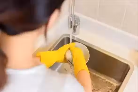 洗碗時,務必避免將碗筷長時間浸泡,避免餐具上的洗潔精殘留,及時晾乾碗筷,尤其要清洗好使用的抹布。